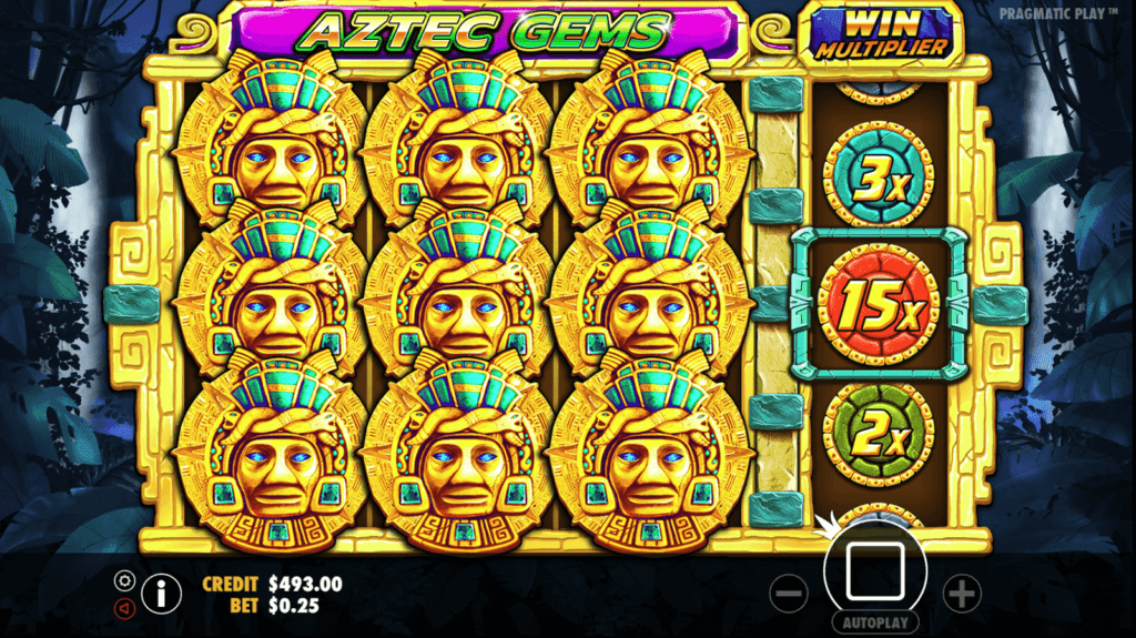 Get started with Aztec Gems™, a 3×3, 5-line video pokies that includes a unique WIN MULTIPLIER reel. All symbols come stacked, and wins can be amplified by up to 15x with the multiplier found on the fourth reel.